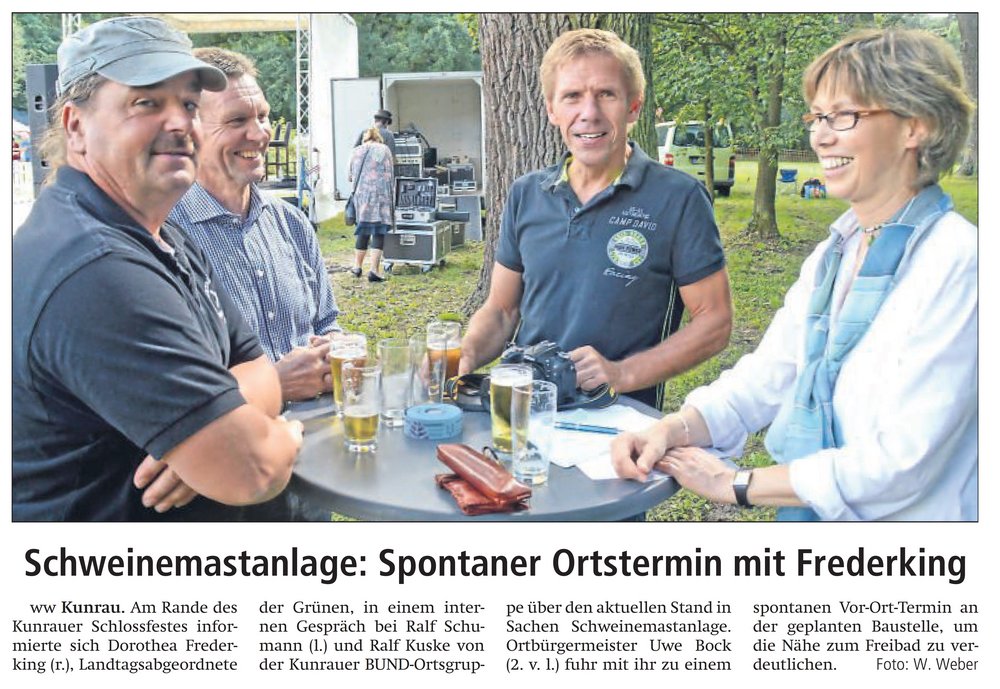 Zur Unterstützung der BUND-Ortsgruppe Kunrau in Ihrem Engagement zur Verhinderung der geplanten industriellen Schweinemastanlage mit 8.500 Mastplätzen vor Ort am Naturpark Drömling spendete ich 400 Euro. Der Drömling soll in Kürze in zu einem Biosphärenreservat werden. Damit wird ein Vorhaben des Koalitionsvertrages von CDU-SPD und BÜNDNIS 90/DIE GRÜNEN umgesetzt. Bereits seit 2011 unterstützte ich die Kunauer BUND-Ortsgruppe im Widerstand gegen die industrielle Schweineanlage.