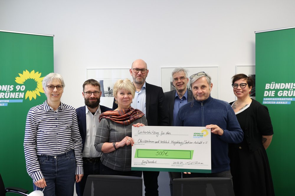 Ich habe gemeinsam mit meinen Abgeordneten-Kolleg*innen aus der GRÜNEN Landtagsfraktion einen Scheck im Wert von 500 Euro an das Öko-Zentrum und Institut Magdeburg Sachsen-Anhalt übergeben. Herr Friedrich ist Vorstandsmitglied und hat den Scheck entgegengenommen.