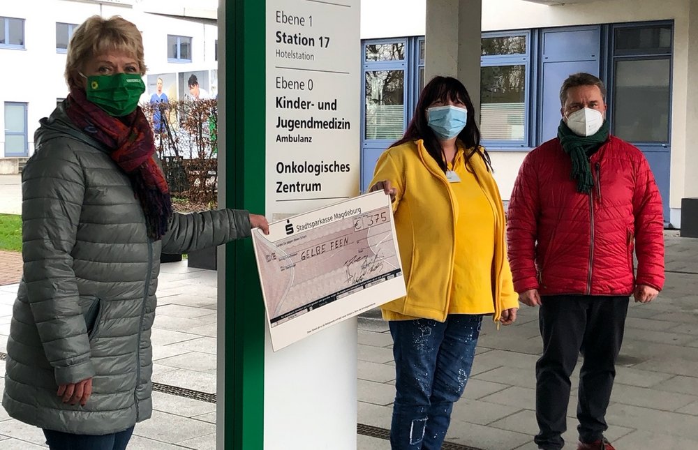 Bei der traditionellen gemeinsamen Silvester-Spende der fünf Abgeordneten der Landtagsfraktion von BÜNDNIS 90/DIE GRÜNEN übergab coronabedingt dieses Mal die Fraktionsvorsitzende Cornelia Lüddemann stellvertretend den Scheck an die „Gelben Feen" im Dessauer Klinikum. Diese haben sich zur Aufgabe gemacht, Kinder bei ihrem Krankenhausaufenthalt von ihrem schweren Alltag abzulenken. Sie kommen vorbei, unterhalten sich mit den Kindern oder spielen mit ihnen.