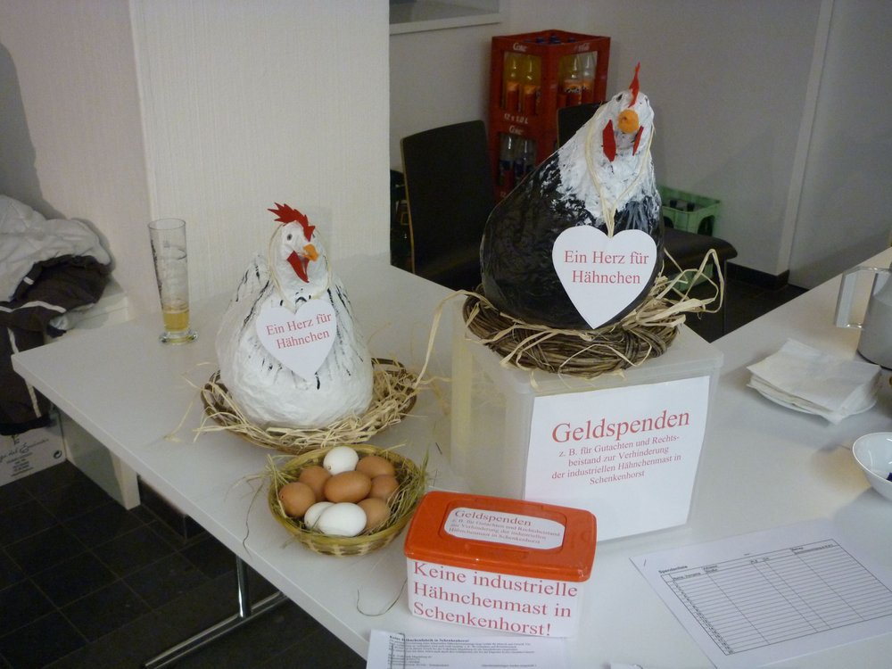 Viele der etwa 70 Anwesenden ließen ihren Unmut über die geplanten Massentierhaltungsanlagen deutlich. Vertreter anderer Bürgerinitiativen (u.a. die BUND Ortsgruppe Kunrau und Dambeck) bestärkten die Schenkenhorster, die schon Spenden für eigene Klagen sammelten, in ihren Aktivitäten. Etwas Uneinigkeit herrschte zwischen mehreren Vertretern von Bürgerinitiativen und dem Abgeordneten der SPD. Die erfahrenen Gegner anderer Mastanlagen waren überzeugt, dass schon nach jetziger Gesetzgebung keine gewerbliche Tierhaltungsanlage genehmigt und betrieben werden dürfte, wenn allein die Tierschutz- und Arzneimittelgesetze streng genommen und eingehalten werden würden. Außerdem warfen sie dem Landesverwaltungsamt vor, die Anträge der Tierhalter nicht kritisch genug zu prüfen.