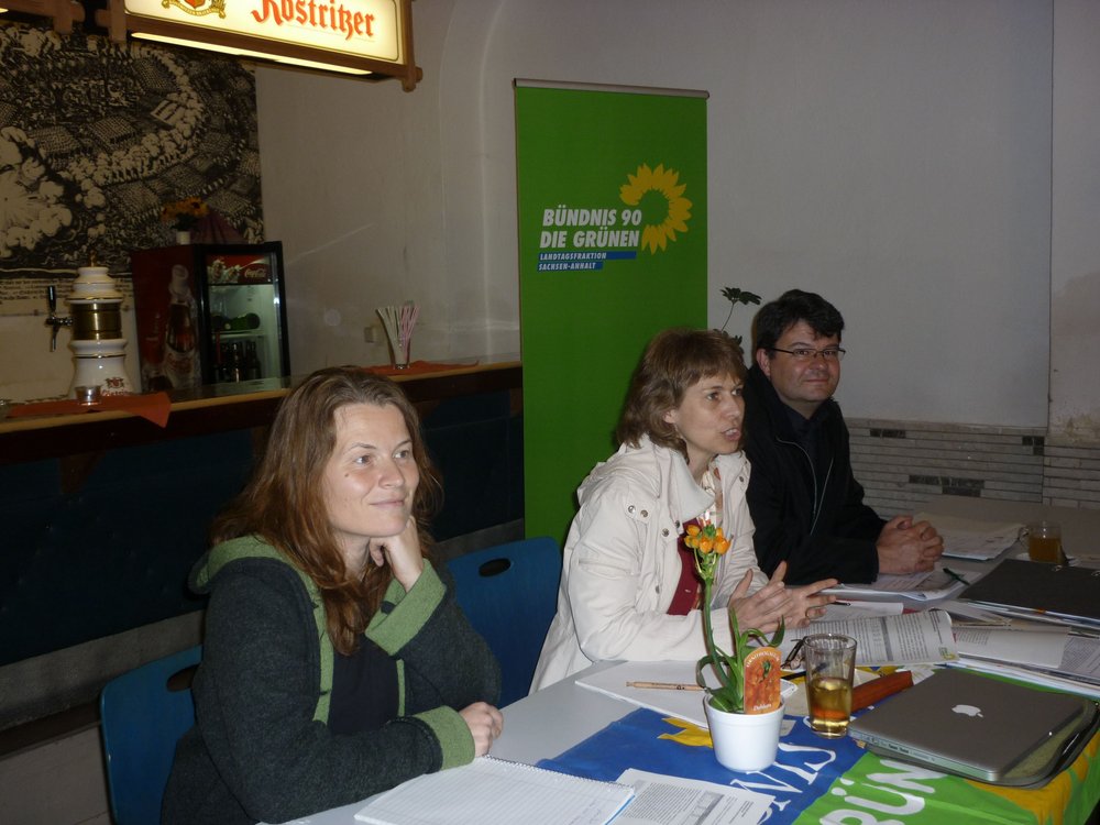 Als Gegenveranstaltung zum Braunkohletag in Cottbus und dem ostdeutschen Energieforum in Leipzig am 10./11.05. veranstalteten die drei Landtagsfraktionen von BÜNDNIS 90/DIE GRÜNEN aus Brandenburg, Sachsen und Sachsen-Anhalt am 9. Mai am in Lützen einen Diskussionsabend zum Ausstieg aus der Braunkohleverstromung. Hier erhielten Bürgerinnen und Bürger aus erster Hand Informationen über den Stand der Energiewende und über die bündnisgrünen Vorstellungen zum Stopp neuer Braunkohlekraftwerke und Braunkohletagebaue.