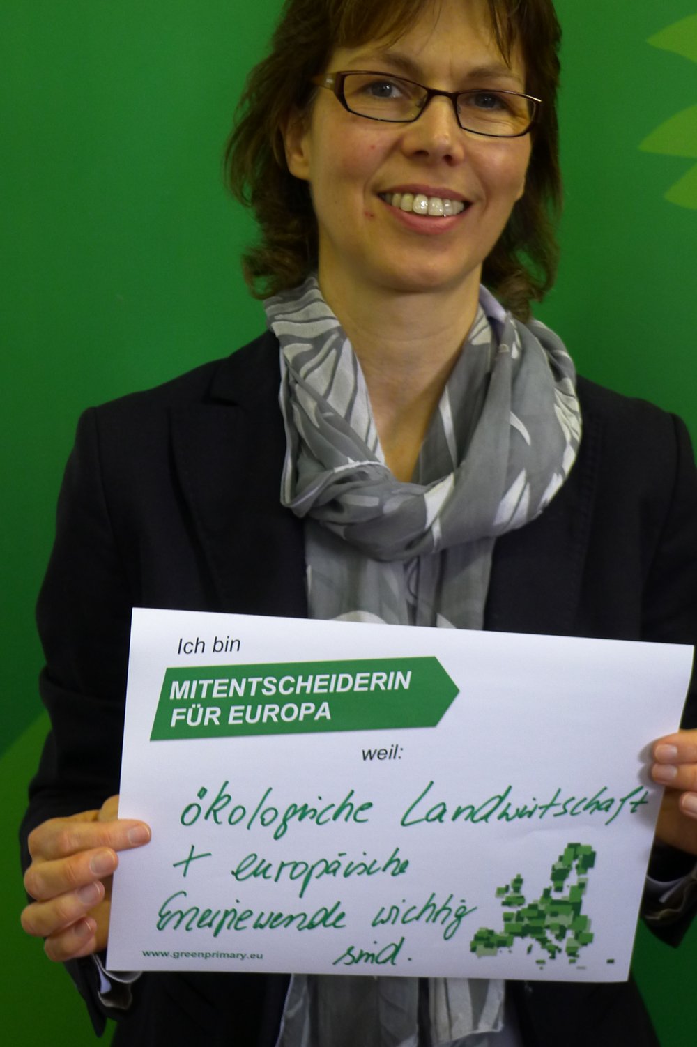 Dorothea Frederking unterstützt die Kampagne und will, dass ALLE mitentscheiden, weil "ökologische Landwirtschaft und europäische Energiewende wichtig sind".