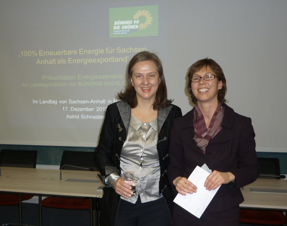 „Sachsen-Anhalts und anteilig Ballungsräume außerhalb des Bundeslandes können zu 100% mit Erneuerbaren Energien für die Bereiche Strom, Wärme und Verkehr von der Fläche Sachsen-Anhalts versorgt werden." So fasst die energiepolitische Sprecherin der Landtagsfraktion BÜNDNIS 90/DIE GRÜNEN, Dorothea Frederking, das zentrale Ergebnis bei der ersten öffentlichen Präsentation des grünen 100%-Erneuerbare-Energien-Szenario im Landtag zusammen.